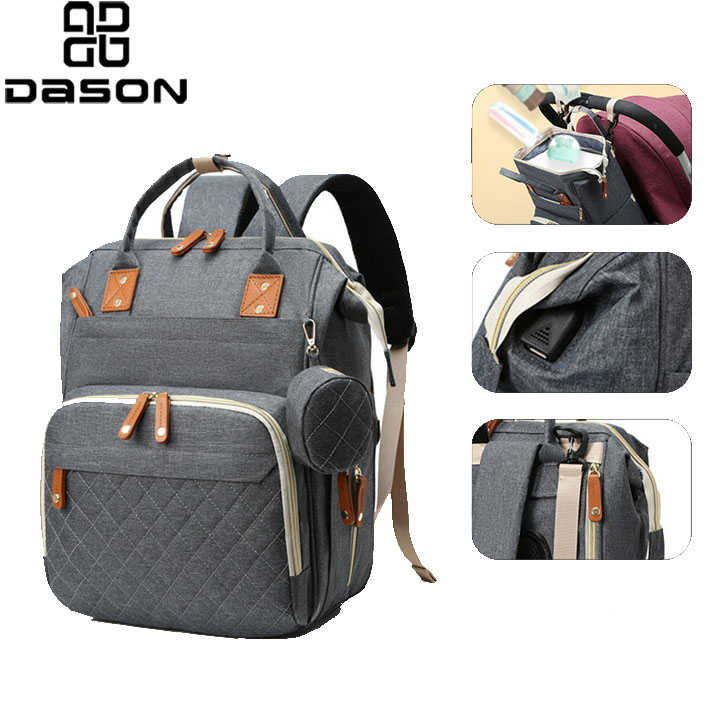 Baby Diaper Backpack made with high-density oxford fabric which water-resistand and scratch-proof,with small coin pouch attached